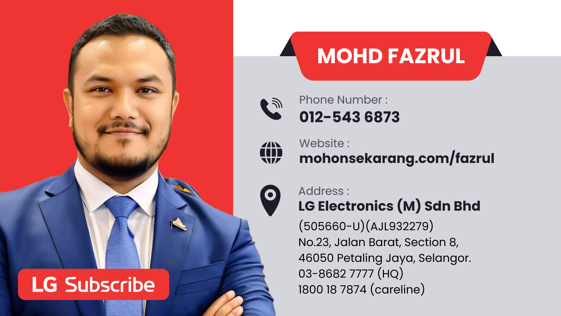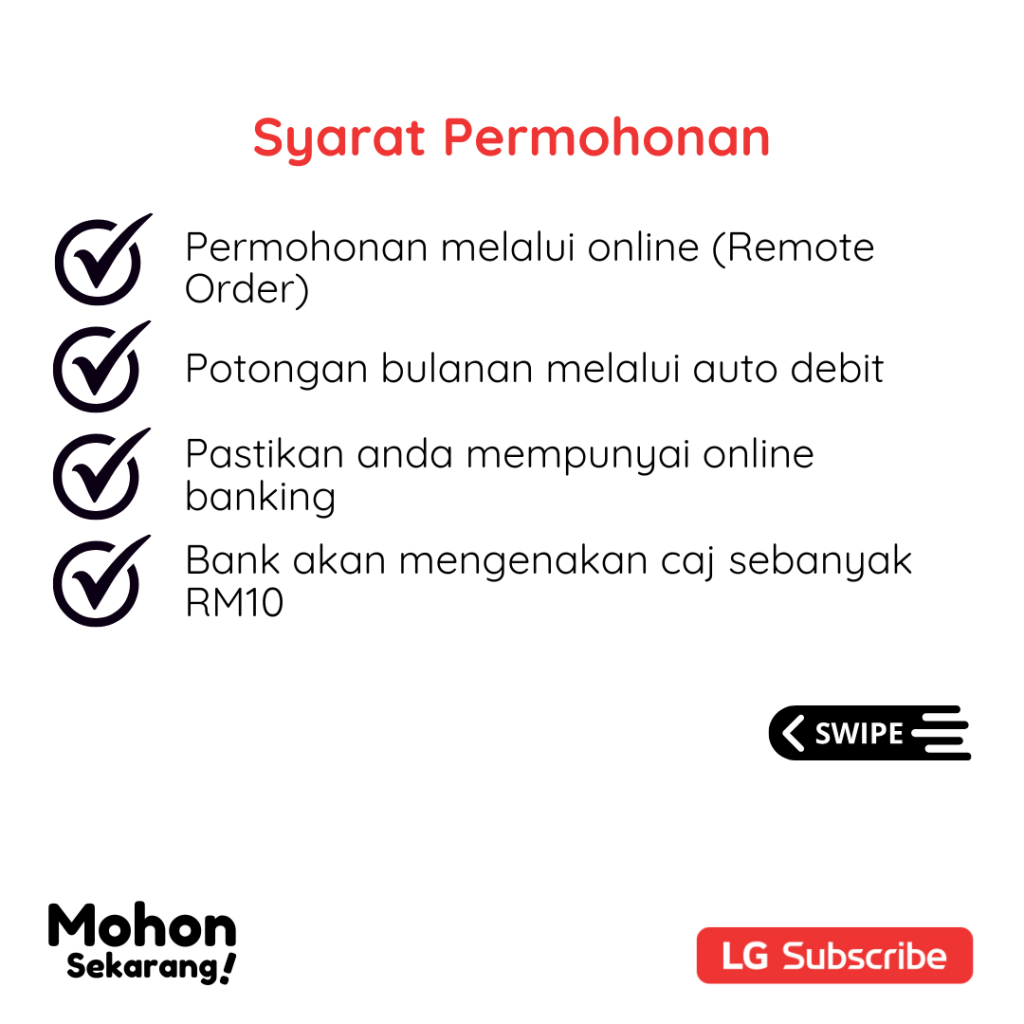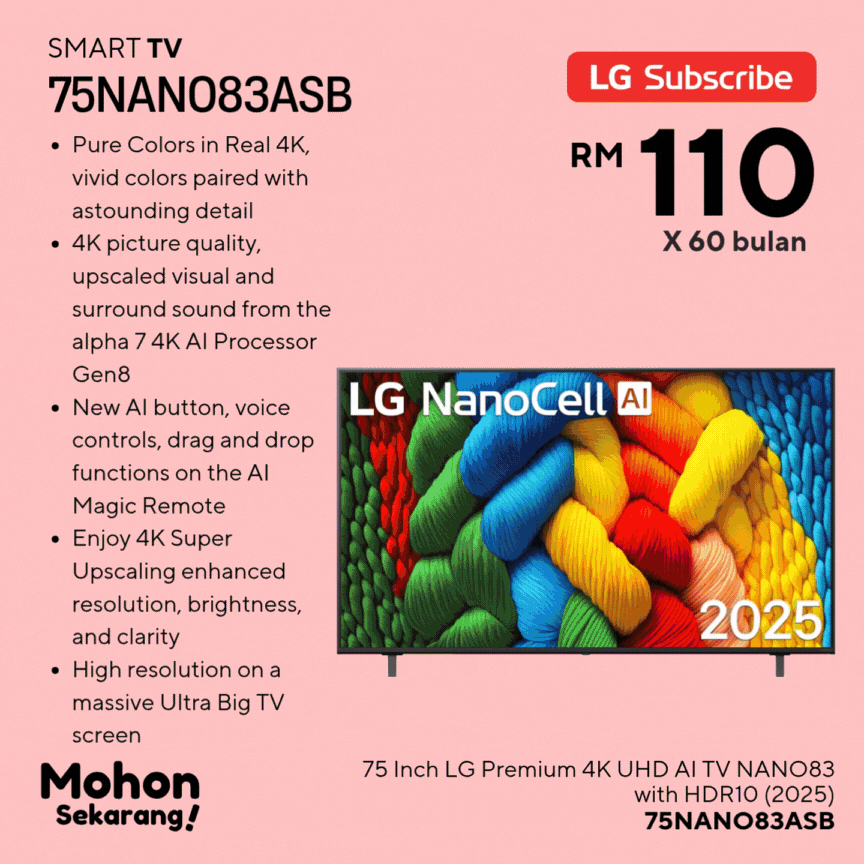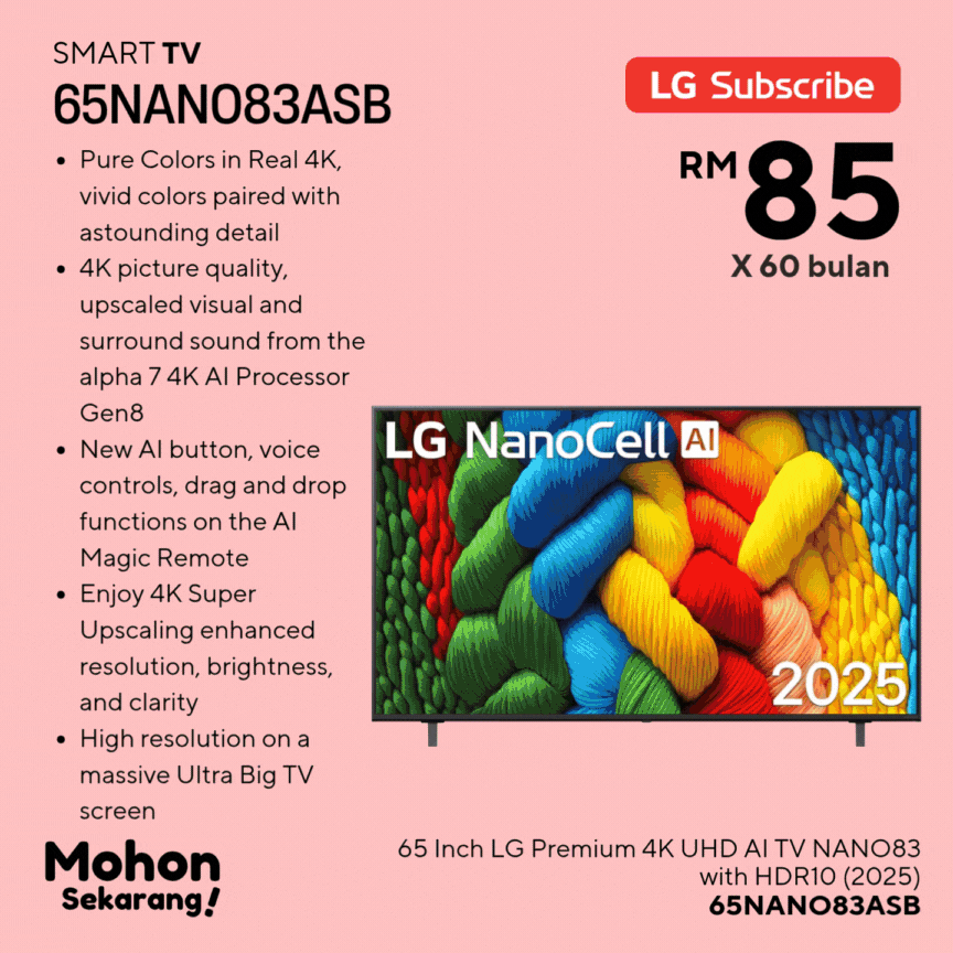 Hai, terima kasih kerana berminat dengan produk dan servis dari LG Subscribe. Anda sedang berurusan dengan saya, Fazrul (Agent Code: LGM233943). Site ini adalah hakmilik peribadi bertujuan untuk memudahkan anda mendapatkan info mengenai produk, pelan harga dan promosi terkini.